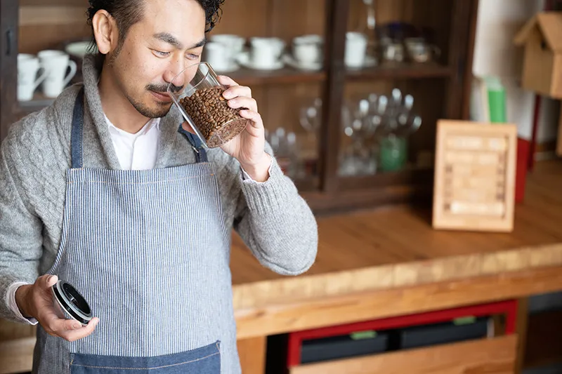 コーヒーを提供するばかりではなく、豆を選んだり、挽いたりするところからセルフでお任せする体験型のサービスを栄で提供中です。上質な香りが漂う多種多様なコーヒー豆を使用し、様々なブレンドをお作りいただいております。バリエーションに富んだ豆を自分好みにブレンドし、美味しく淹れる楽しさをご堪能いただけます。ブレンドは飲み放題ですので、テイスティングした後に更にお好みに合わせて配合できます。